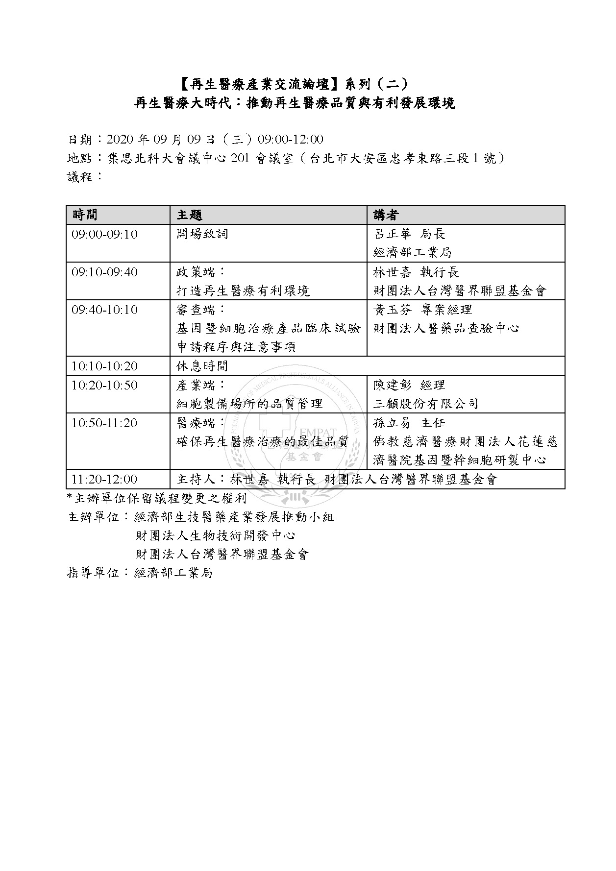 - 活動地點:集思北科大會議中心201會議室(臺北市忠孝東路三段1號億光大樓2樓)
