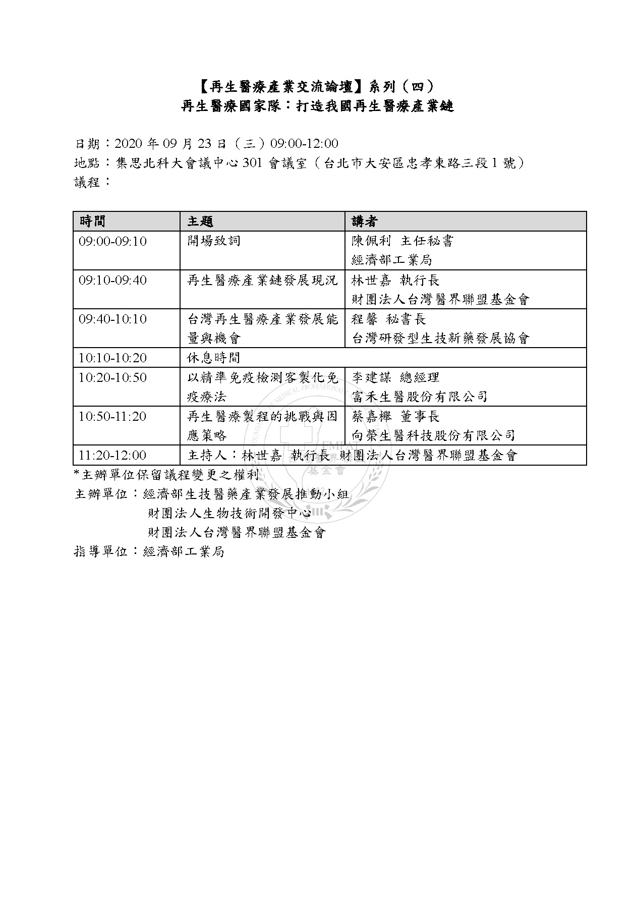 【再生醫療產業交流論壇】系列四:再生醫療國家隊:打造我國再生醫療產業鏈